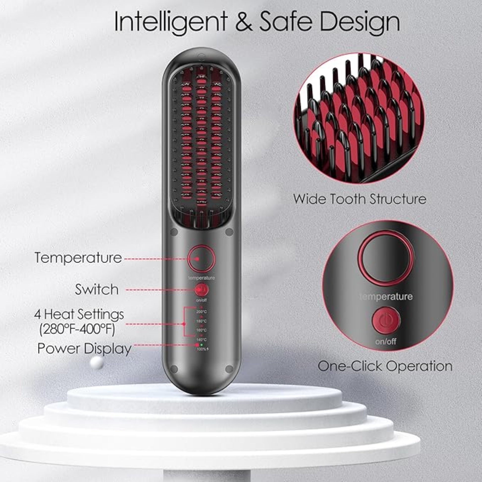 Med avancerad keramisk värmeteknik värms borsten upp jämnt och skonsamt, vilket minimerar risken för värmeskador. De joniserande borstpiggarna eliminerar statisk elektricitet och ger håret en silkeslen finish.